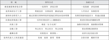 由表1可见:一方面,统一战线为巩固党的领导地位和执政地位提供了广泛力量支持;另一方面,统一战线为改进党的领导方式和执政方式、提升领导能力和执政能力提供了理念思维、方式渠道和系列制度保证。